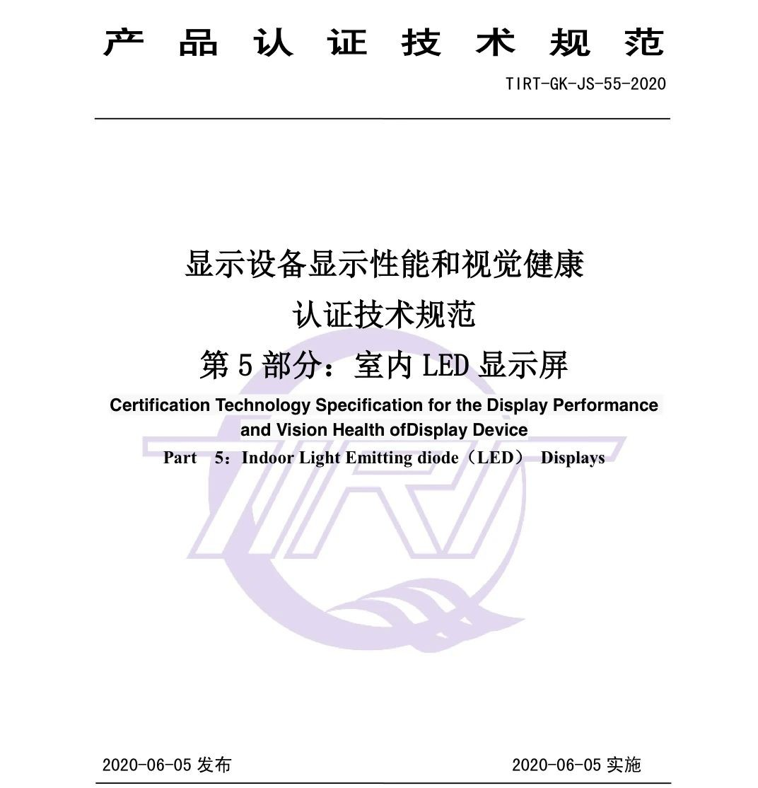 对此,根据我国显示设备的发展、生产和使用的现状,并参考相关检测标准,由金年会·jinnian(金子招牌)作为主要起草单位,制定并发布TIRT-GK-JS-55-2020《 显示设备显示性能和视觉健康认证技术规范(室内 LED显示屏部分)》(以下简称《技术规范》)。