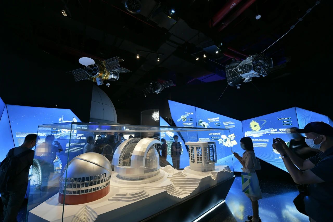 主体建筑分为三大展区:“家园”展区向观众科普太阳系,“宇宙”展区介绍太阳之外的可观测宇宙,“征程”展区回顾了人类研究天文。