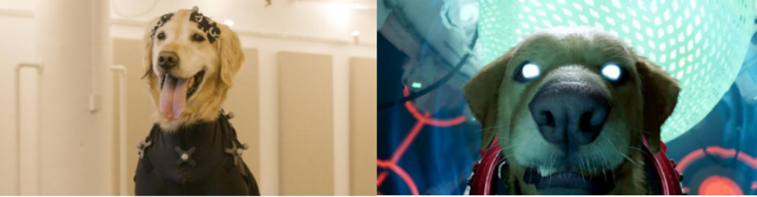 左侧:Deigo(真实狗) 右侧:Cosmo(太空狗)