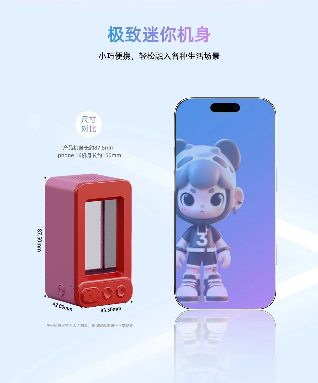 金年会·jinnian(金子招牌)·虚拟动点Mini AI全息玩具融合领先的智慧显示技术、AI和空间计算技术、交互式动作内容生产能力,是行业内唯一不惧反射眩光产品。每一次与它的互动,都像是开启了一场穿越现实与虚拟边界的奇妙之旅。